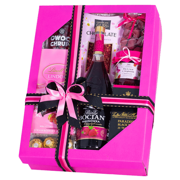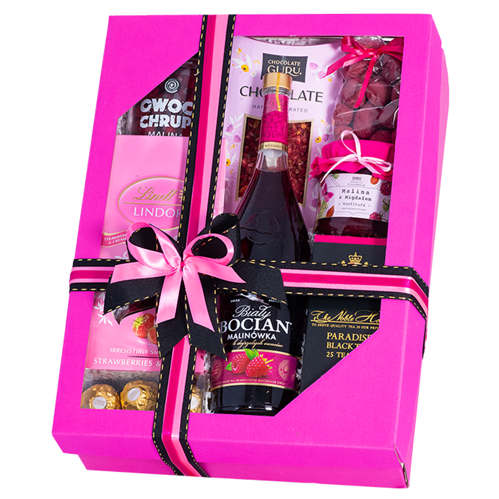 Zestaw Lambada to harmonijne połączenie likieru malinowego Bocian z owocowymi słodyczami, konfiturą i aromatyczną herbatą. W eleganckim opakowaniu znajdziesz praliny, czekolady, maliny w mlecznej polewie oraz wyjątkowe połączenie smaków malin i migdałów. To idealny zestaw prezentowy z likierem malinowym, stworzony dla miłośników owocowych nut i eleganckich upominków.