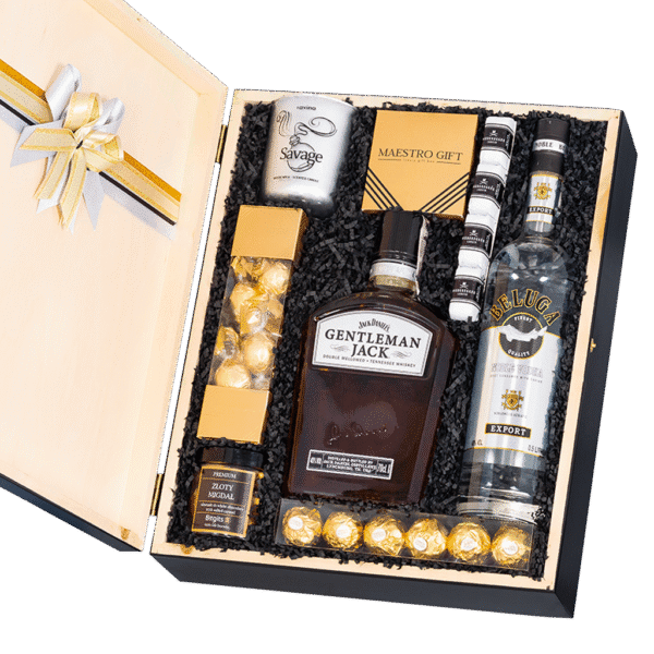 Zestaw Lansier to luksusowa kompozycja trunków premium i wyrafinowanych słodyczy, stworzona z myślą o eleganckich podarunkach. Znajdziesz w nim amerykańską whiskey Gentleman Jack, wódkę Beluga Noble oraz zestaw czekoladek, pralin i migdałów w białej czekoladzie ze słonym karmelem. Całość uzupełnia sojowa świeca zapachowa, która dodaje wyjątkowego charakteru i podkreśla ekskluzywny styl zestawu.