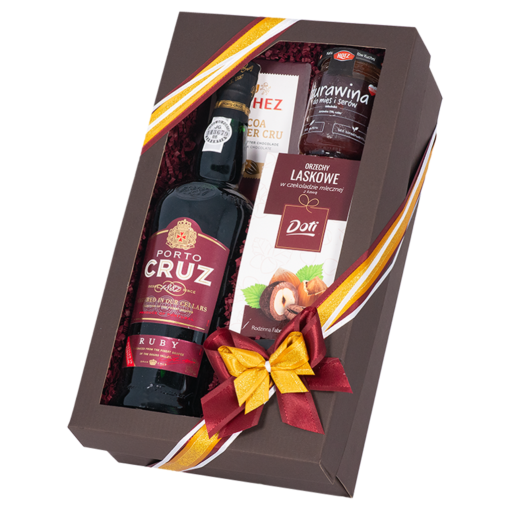 Zestaw Marsylianka to elegancki zestaw prezentowy delikatesowy,łączący wykwintne smaki w stylu premium. W jego skład wchodzi pasztet drobiowo‑wieprzowy, żurawina do mięs i serów, a także czekolada gorzka90% kakao i orzechy laskowe w mlecznej czekoladzie z nutą kawy. To idealny prezent dla miłośników wyrafinowanych smaków i kulinarnych przyjemności.