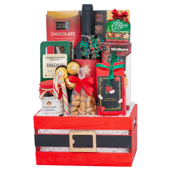 Zestaw Mikołaj to świąteczna kompozycja z hiszpańskim winem Pena Tejo Bobal Tempranillo, ręcznie paloną kawą i wykwintnymi słodyczami. W eleganckim opakowaniu znajdziesz czekoladki, ciastka, konfiturę korzenną, orzechy w karmelu oraz aromatyczną herbatę z jabłkiem i cynamonem. To idealny świąteczny zestaw prezentowy dla miłośników dobrego smaku i świątecznej atmosfery.