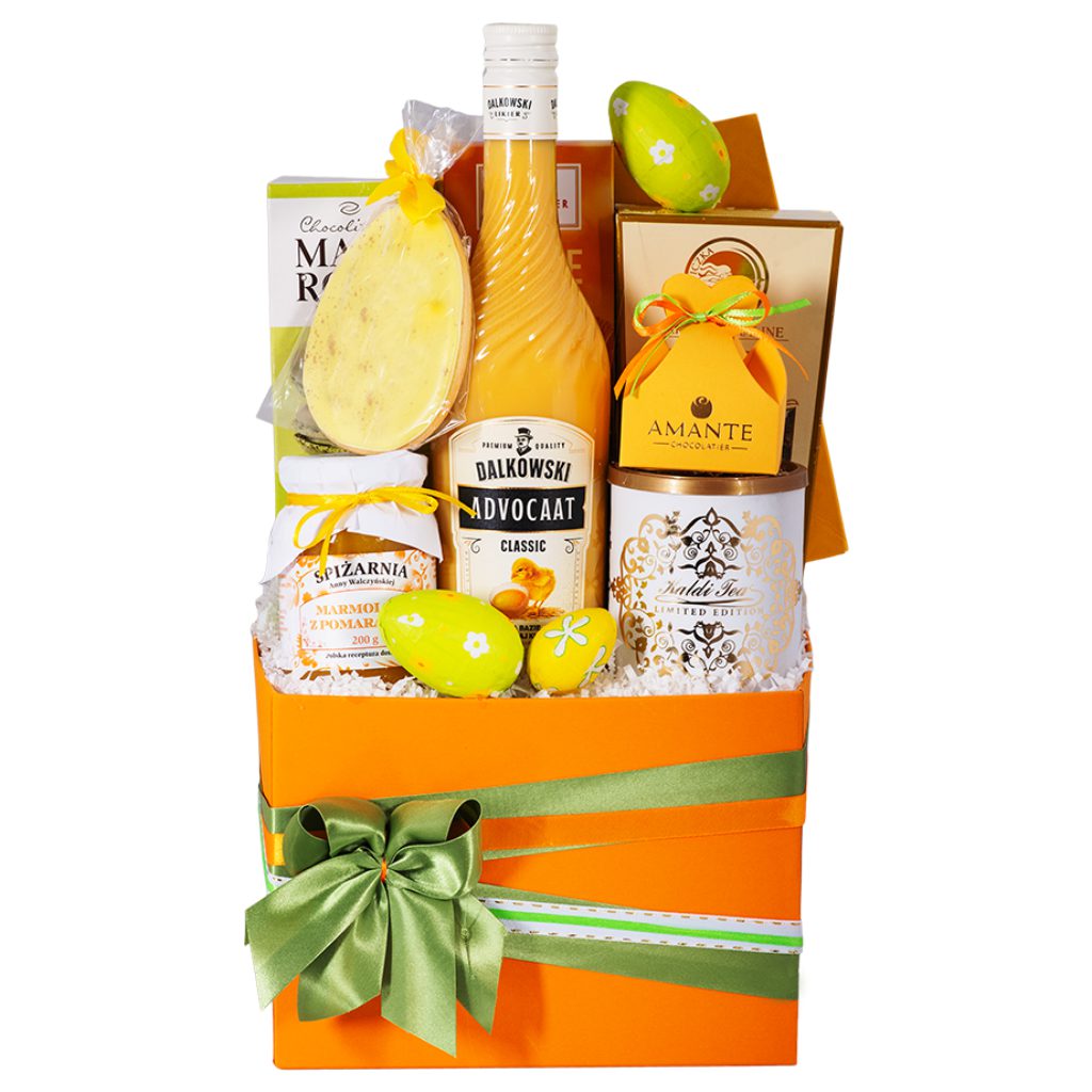 Podaruj wyjątkowy prezent na Wielkanoc z zestawem Pisanka! Ten elegancki zestaw wielkanocny pełen jest wykwintnych słodyczy i delikatesów, idealny jako upominek świąteczny. W środku znajdziesz wyjątkowy kremowy napój, praliny waniliowe z czekolady mlecznej, delikatne makaroniki pistacjowe, aromatyczną czarną herbatę, czekoladki z nadzieniem słonego karmelu oraz praliny kokosowe z czekolady mlecznej. Całość uzupełnia pyszna marmolada pomarańczowa, ręcznie wyrabiane praliny i urocze kruche ciastko z masą cukrową. Idealny zestaw prezentowy na świąteczny stół!