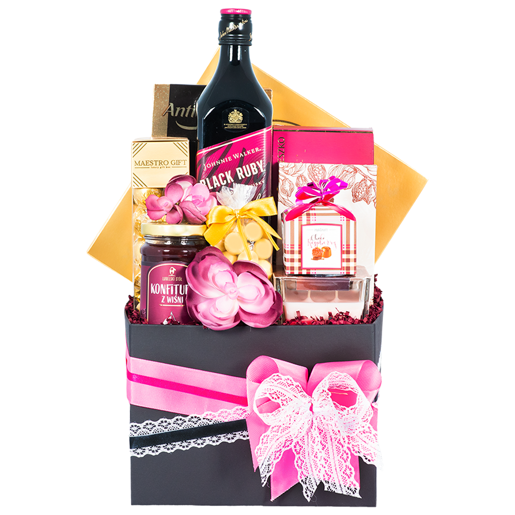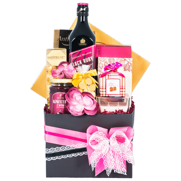 Zestaw Rondo to luksusowy kosz upominkowy z wyjątkową whisky Johnnie Walker Black Ruby i kolekcją wykwintnych słodyczy. W środku znajdują się praliny, konfitura z wiśni, migdały w białej czekoladzie oraz aromatyczna świeca zapachowa, które tworzą elegancką kompozycję na każdą okazję. To idealny prezent dla mężczyzny, miłośnika dobrego smaku i klasy.