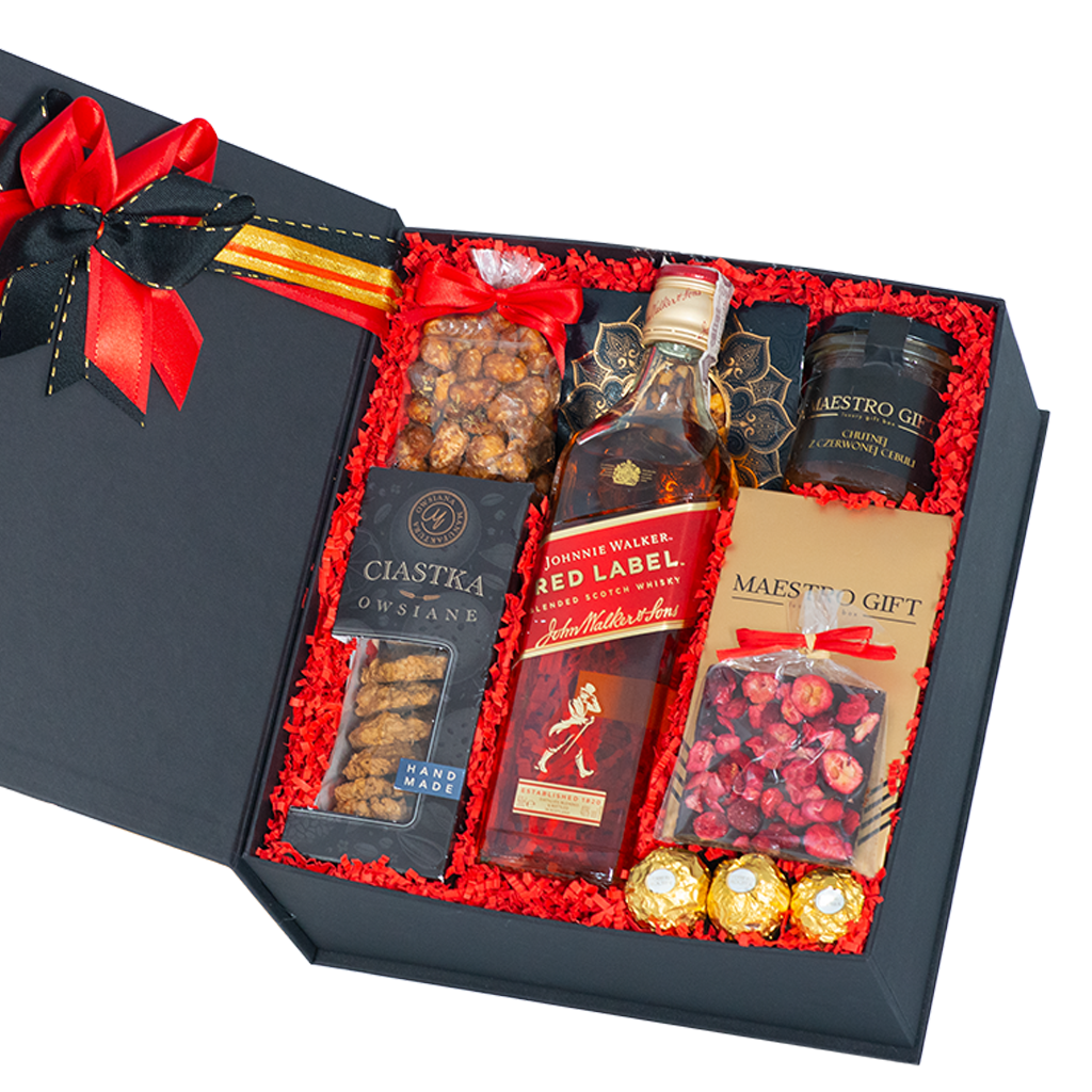 Zestaw Rumba to elegancki zestaw prezentowy z whisky, idealny dla miłośników wyrazistych smaków i aromatów. W jego skład wchodzi szkocka whisky Johnnie Walker Red, brazylijska kawa, ciastka owsiane z malinami, czekolady i orzechy w karmelu, które tworzą doskonałe połączenie. To świetny prezent dla mężczyzny lub konesera dobrego alkoholu i słodkich dodatków.