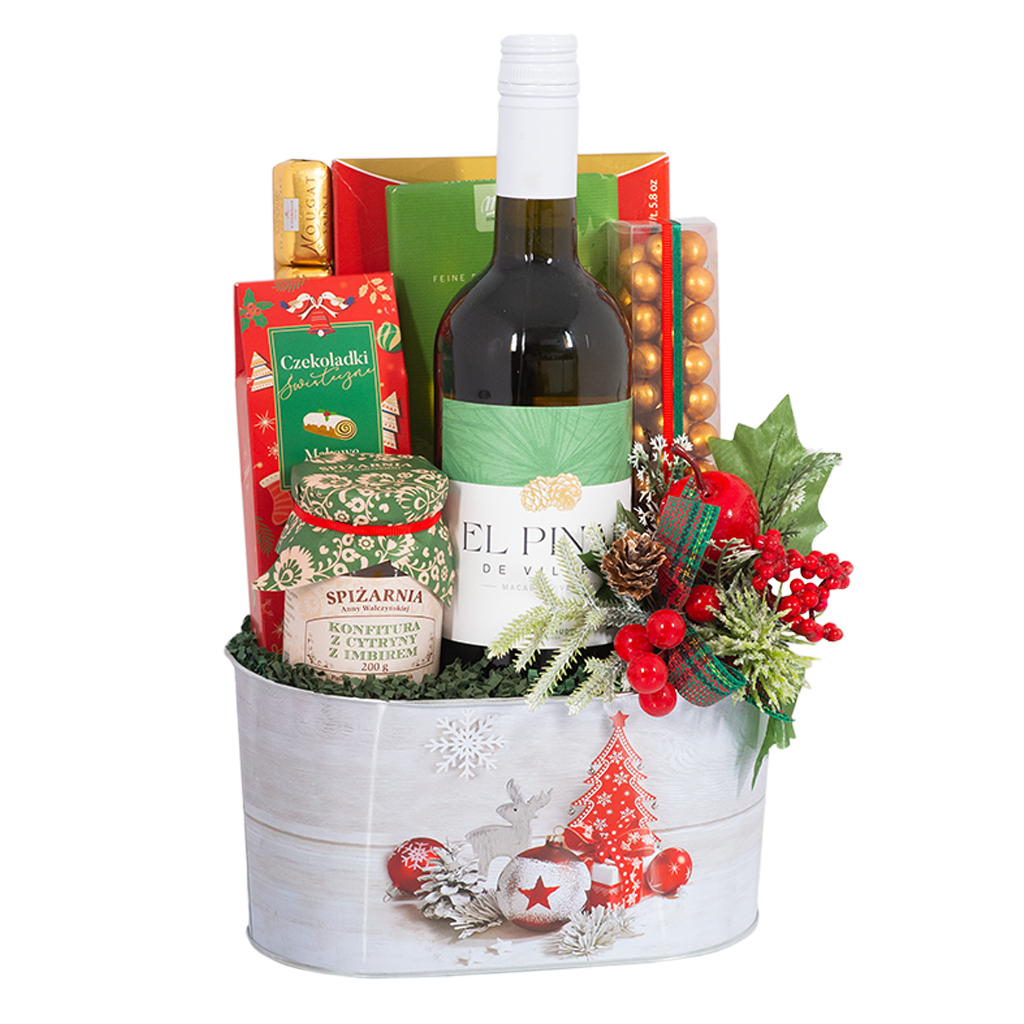 Zestaw Świąteczny Smak to elegancki zestaw prezentowy świąteczny, któryłączy klasyczne słodycze z nutą cytrusowej świeżości. W jego skład wchodzą czekoladki nadziewane wiśniami, gorzka i biała czekolada, konfitura cytrynowa z imbirem oraz chrupiące perełki w mlecznej czekoladzie, które tworzą wyjątkową kompozycję smaków. To idealny prezent pod choinkę dla osób ceniących słodkie, świąteczne przyjemności.