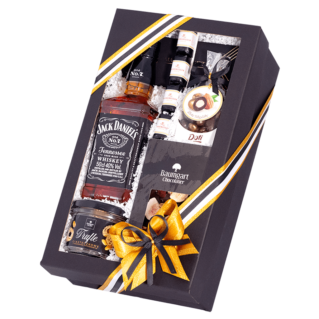 Zestaw Swing to eleganckie połączenie amerykańskiej whiskey Jack Daniel’s z wykwintnymi słodyczami i ręcznie wyrabianą czekoladą o unikalnych dodatkach. W środku znajdują się praliny, trufle i migdały w czekoladzie – idealna kompozycja dla miłośników głębokich smaków. To doskonały zestaw prezentowy z whiskey, któryłączy klasykę, styl i nutę luksusu.