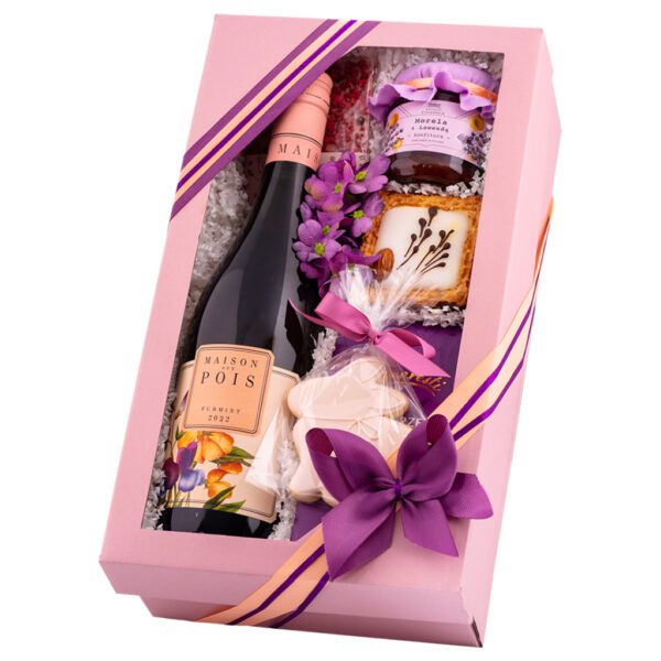 Odkryj Wiosenny Akcent, idealny prezent na Wielkanoc pełen świeżości i smaku! Ten elegancki zestaw wielkanocny to doskonały upominek świąteczny, który zachwyca. W jego skład wchodzi wykwintny węgierski napój z winogron, biała czekolada z malinami, czarne porzeczki w czekoladzie deserowej, aromatyczna konfitura morelowa z lawendą, tradycyjny mazurek wielkanocny oraz kruche ciastko z masą cukrową. Podaruj niezapomniany zestaw prezentowy na świąteczny stół!